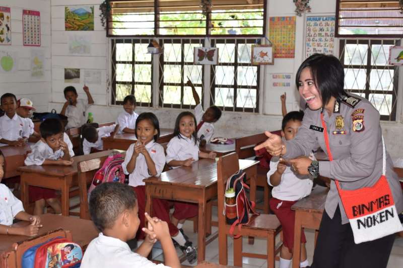 Nabire, Binmas Noken Polri dalam kegiatannya Polisi Pi Ajar berlangsung di SD Negeri Inpres Oyehe, Kabupaten Nabire, Selasa 29/10/19) pagi.