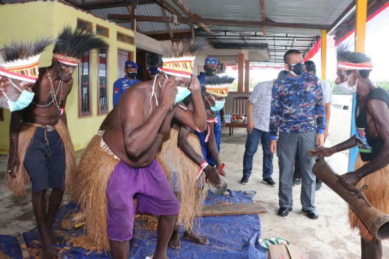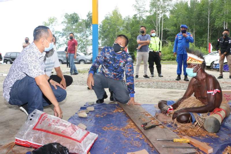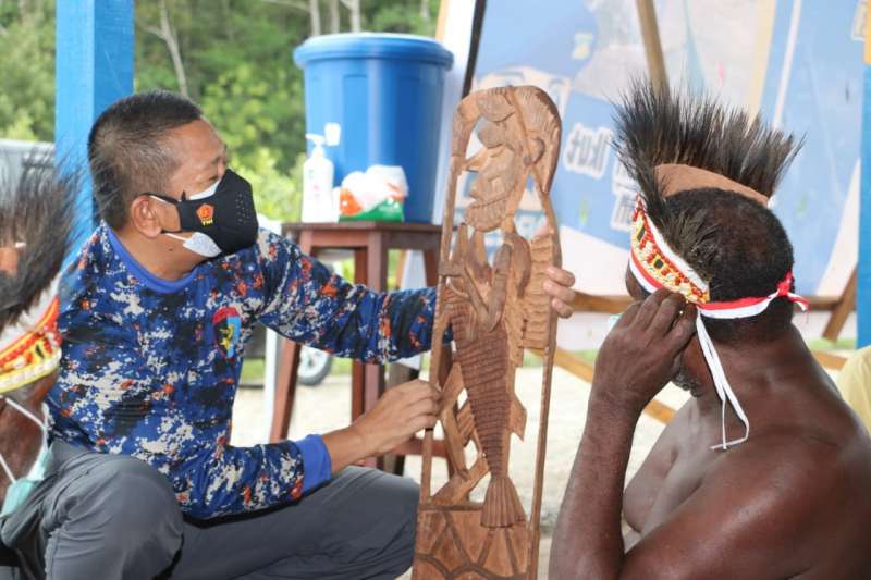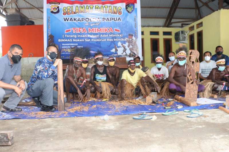 Timika_. Wakapolda Papua Brigjen Pol Dr. Eko Rudi Sudarto, S.I.K., M.Si., Didampingi, Dir Binmas Polda Papua, Kombespol Gatot Aris Purbaya, Dir Polair Polda Papua, Kombespol Ir. Kasmola, Kabid Humas Polda Papua, Kombespol Ahmad Mustofa Kamal, Kabid Keu Polda Papua, Kombespol Widianto Wahyu Nugroho dan Wadir Intelkam Polda Papua, AKBP, Angling Guntoro, mengunjungi kelompok Tradisi Seni Ukir Suku Kamoro di Pomako kabupaten mimika, Minggu 4 Juli 2021.