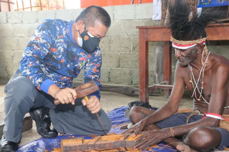 “Kasat Polairud Polres Mimika, AKP, Frits Erari disela-sela kegiatan tersebut mengatakan, melalui Program Binmas Noken, kami implementasikan ke dalam istilah, Tifa Mimika (Torang Insan Paham Adat Mimika) yang mana kami bentuk kelompok seni ukir ini.