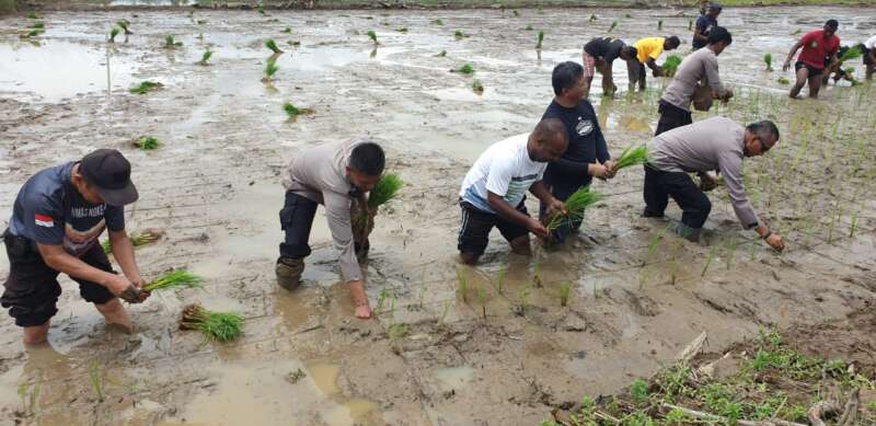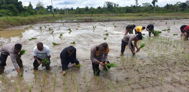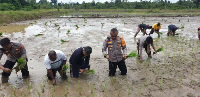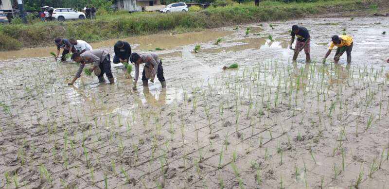 Terlihat Kapolres Yahukimo bersama Kepala Dinas Pertanian dan Dansektor Yahukimo tidak segan langsung turun untuk menanam bibit padi bersama para warga binaan, kotornya lumpur pun tidak dihiraukan oleh mereka.
