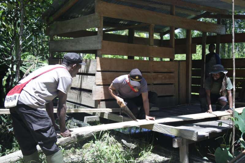 “Kehadiran Polri di Tanah ini khususnya di Kabupaten Nduga terus berupaya untuk membantu mensejahterakan masyarakat dengan melaksanakan program-program Binmas Noken Polri salah satunya Program Kasuari (Kesejahteraan Untuk Anak Negeri) dengan membuatkan kandang babi serta memberikan sepasang hewan ternak,” lanjutnya.