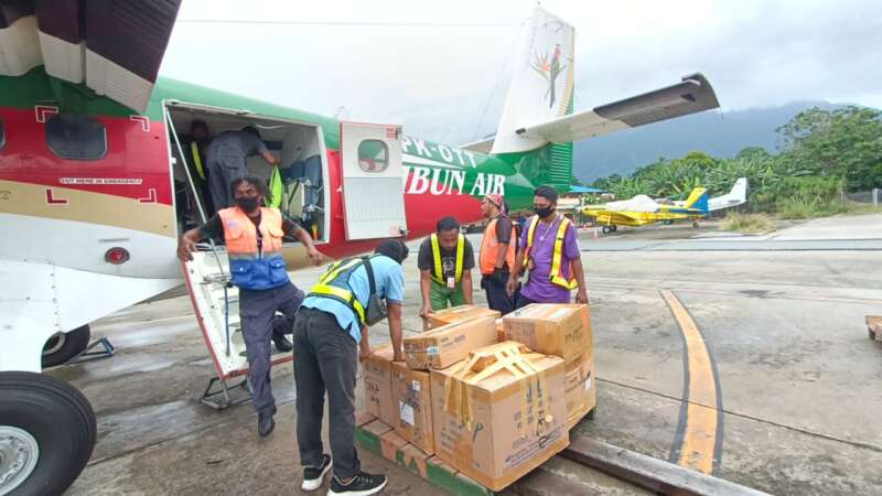 Dikatakan Ipda Febrianto, untuk pengiriman sendiri kami menggunakan Pesawat Rimbun Air dari Bandar Udara Sentani Kabupaten Jayapura.