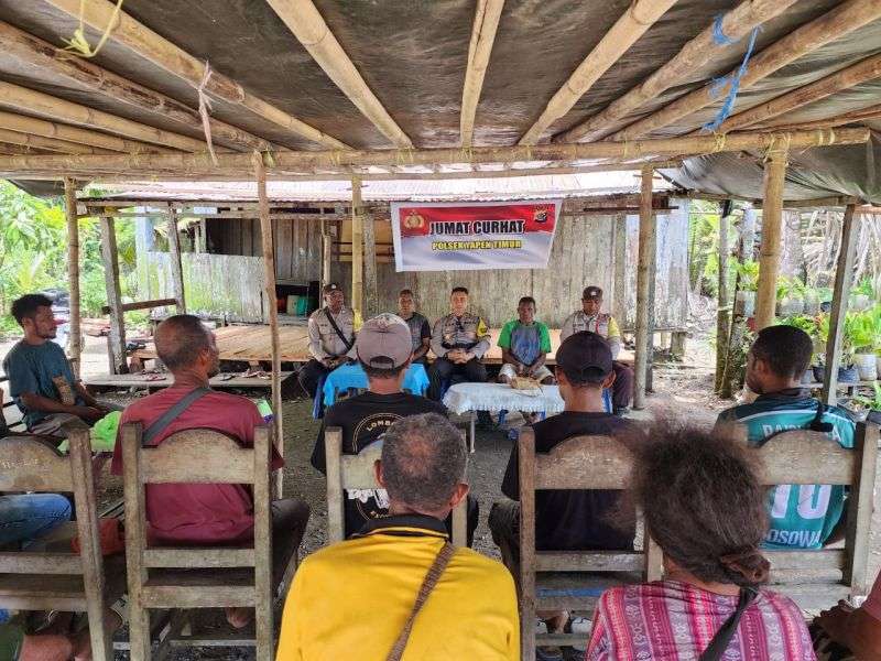 Yapen – Menyambangi warga di Kampung Nunsembai Distrik Yapen Timur, jajaran Polsek Yapen Timur yang di pimpin langsung oleh Ipda Ibar Salurapa selalu Kapolsek Yapen Timur bersama anggotanya, terima masukan-masukan masyarakat pada kegiatan jumat curhat. Jumat (22/3/24).