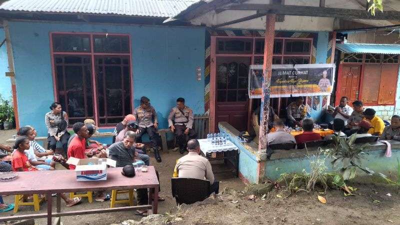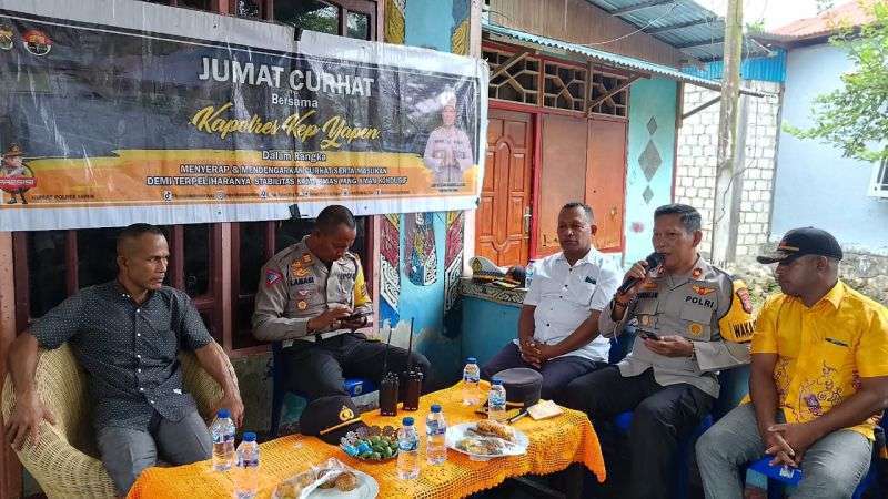 Yapen – Polres Kepulauan Yapen saat melaksanakan kegiatan jumat curhat bersama warga Kampung Pasir Hitam di salah satu rumah warga, menjadi momentum penting dimana warga sekitar yang hadir menyampaikan berbagai keluhan-keluhan penting yang sangat meresahkan masyarakat. Jumat (22/3/24).