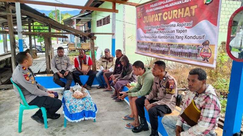 Yapen – Jajaran Polsek KPL Serui pada Polres Kepulauan Yapen saat melaksanakan kegiatan jumat curhat bersama tukang ojek pangkalan wainakawini, menjadi hal penting guna mendapatkan berbagai masukan-masukan baik pada pelayanan kepolisian terlebih untuk peningkatan keamanan bagi masyarakat. Bertempat di pangkalan ojek wainakawini. Jumat (22/3/24).