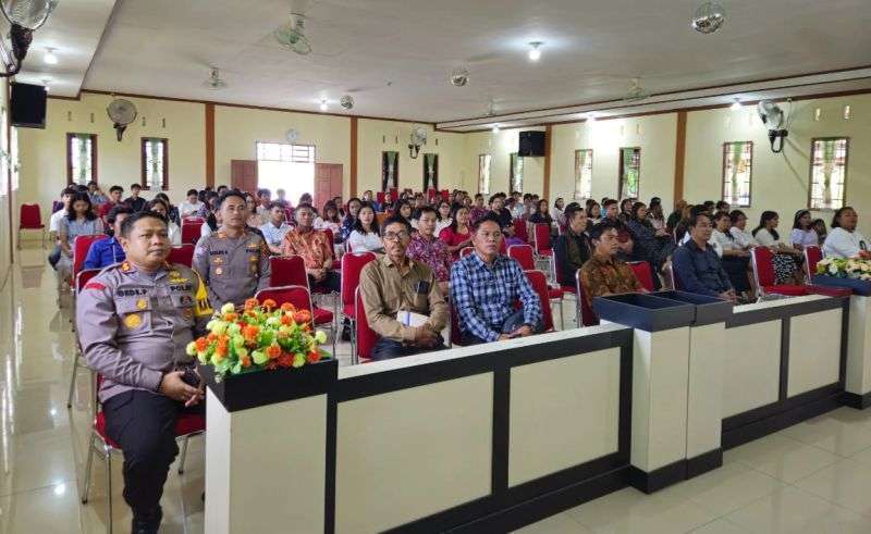 Kapolres didampingi Kasat Binmas AKP Paulus Rande Ratu yang diterima Pdt. Martha Magdalena Korwa selaku Ketua Majelis Jemaat GKI Imanuel dan para Jemaat.