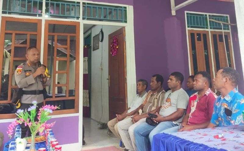 Yapen – Kapolres Kepulauan Yapen AKBP Herzoni Saragih didampingi oleh PJU Polres Kepulauan Yapen melaksanakan kegiatan jumat curhat bersama masyarakat dan aparat Kampung Distrik Teluk Ampimoi di kediaman Kepala Distrik Teluk Ampimoi. Jumat (19/4/24).