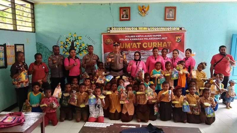 Berbagi Kasih Jumat Curhat Polsek KPL Serui Bersama Anak Murid SD Inpres Pasir Putih