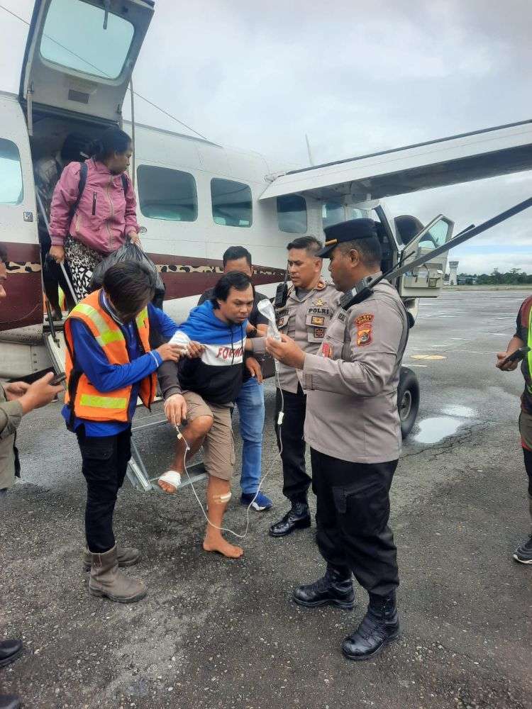 Pada saat evakuasi menggunakan pesawat jenis Caravan C 208 B Reven Global Airtransport / PK-RVC, Pilot Capt. Gustav H, dari Bandar Udara Aminggaru Ilaga Kabupaten Puncak.