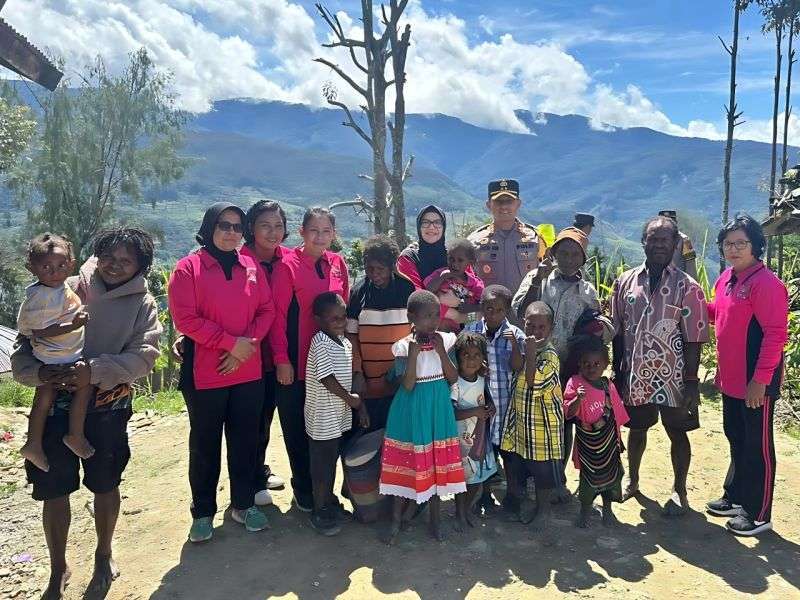 Sugapa – Ketua Bhayangkari Cabang Intan Jaya, Ny. Yati Afrizal Asri bersama Kapolres Intan Jaya AKBP Afrizal Asri menemui anak-anak di Distrik Sugapa, Kabupaten Intan Jaya, Rabu (12/06/24).