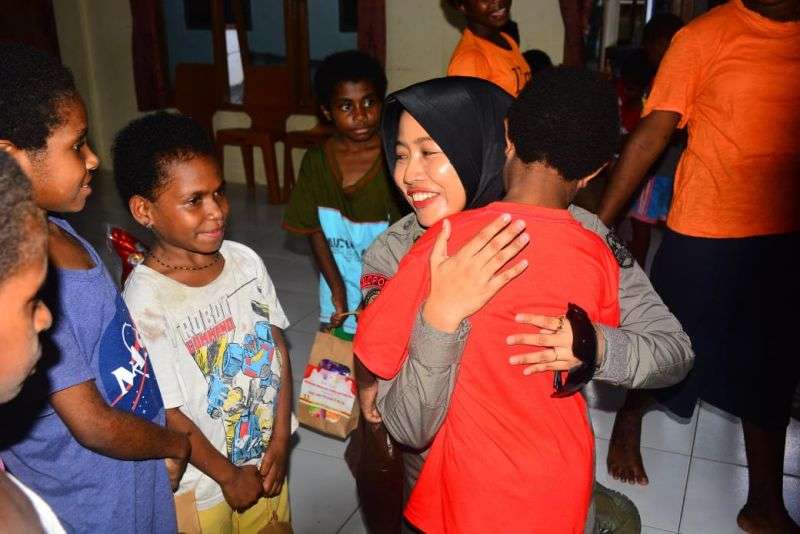 Brigadir Ita Sombo Allo, salah satu perwakilan Polwan dari Satgas Damai Cartenz-2024, menyampaikan pesan penuh kasih kepada anak-anak di Yayasan Peduli Kasih dan Panti Asuhan Yapeda.