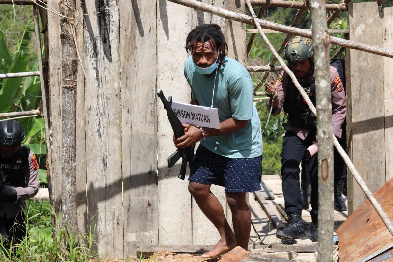 Satgas Ops Damai Cartenz Secara Profesional Gelar Rekonstruksi Keterlibatan Nikson Matuan Saat Penembakan Anggota Brimob
