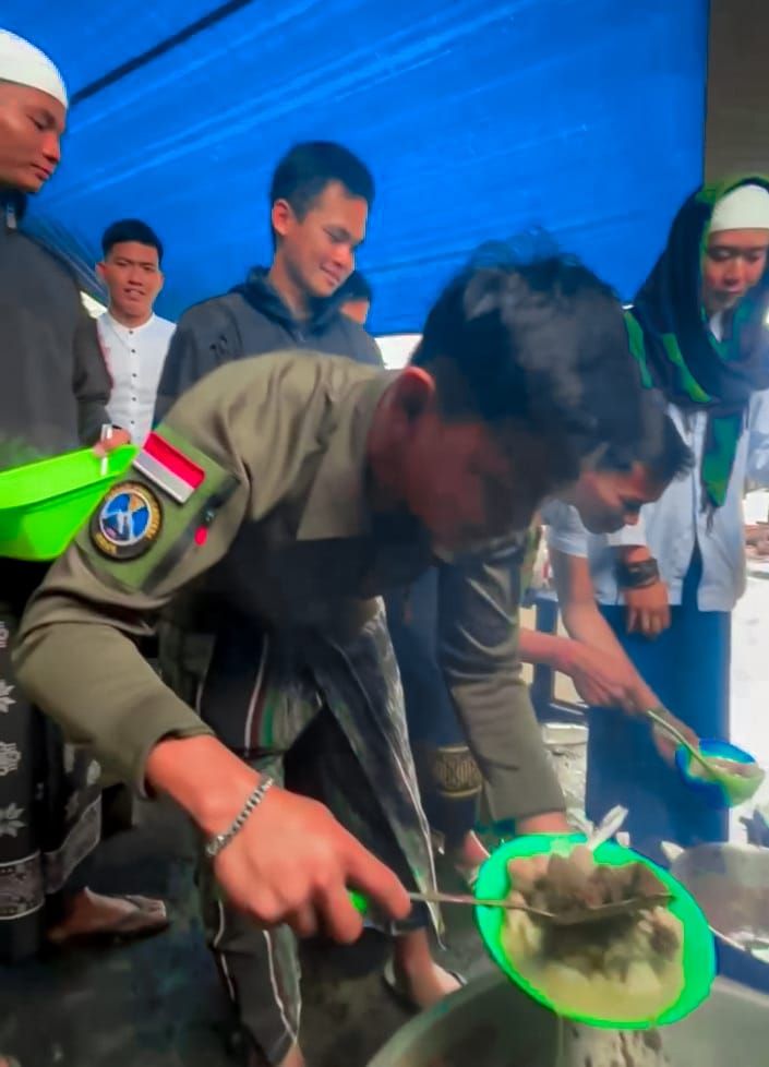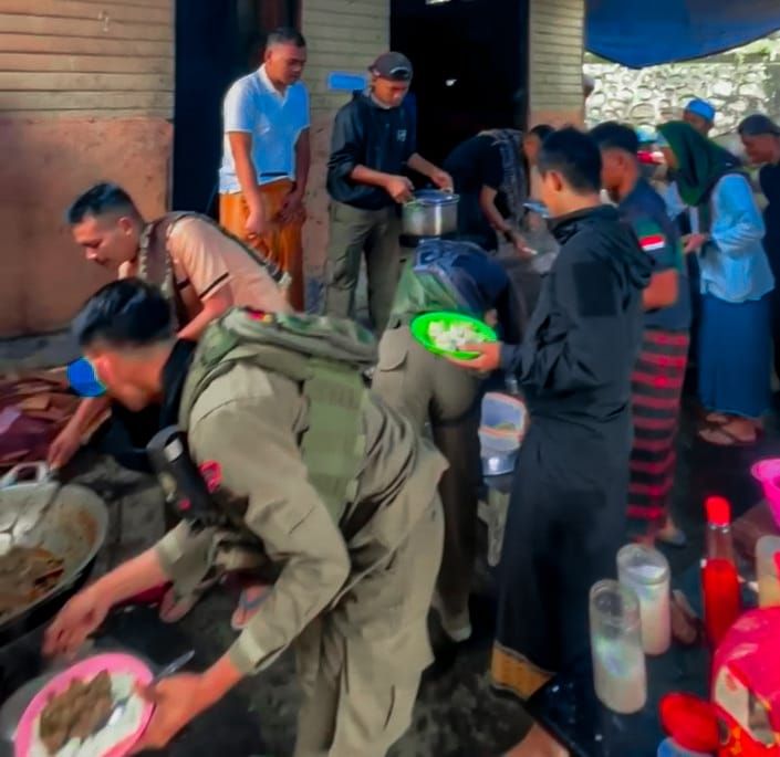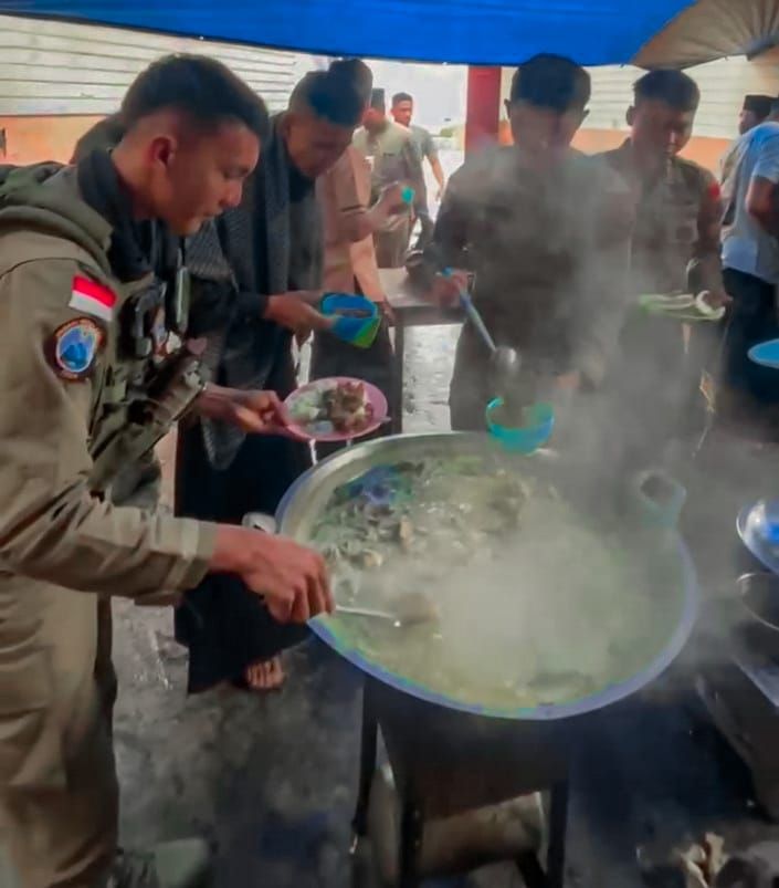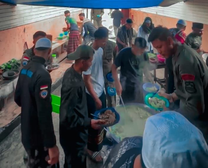 Asap dari hidangan yang baru matang menambah kehangatan suasana, mencerminkan nilai gotong royong dan solidaritas di antara mereka.