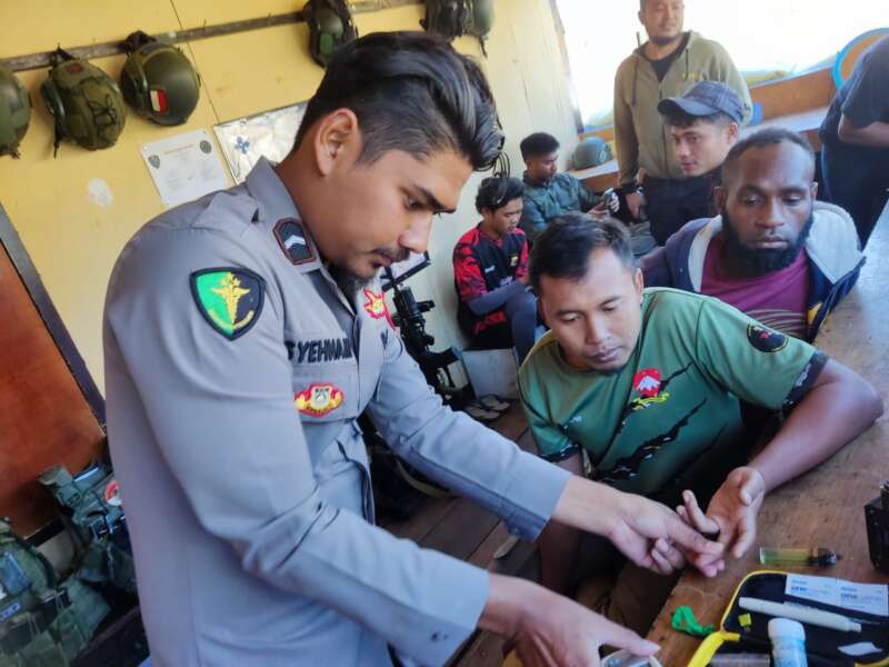 Jaga kesehatan, Tim Medis Satgas Binmas Ops Damai Cartenz-20922 layani pengobatan Petugas Satgas Gakkum di Posko