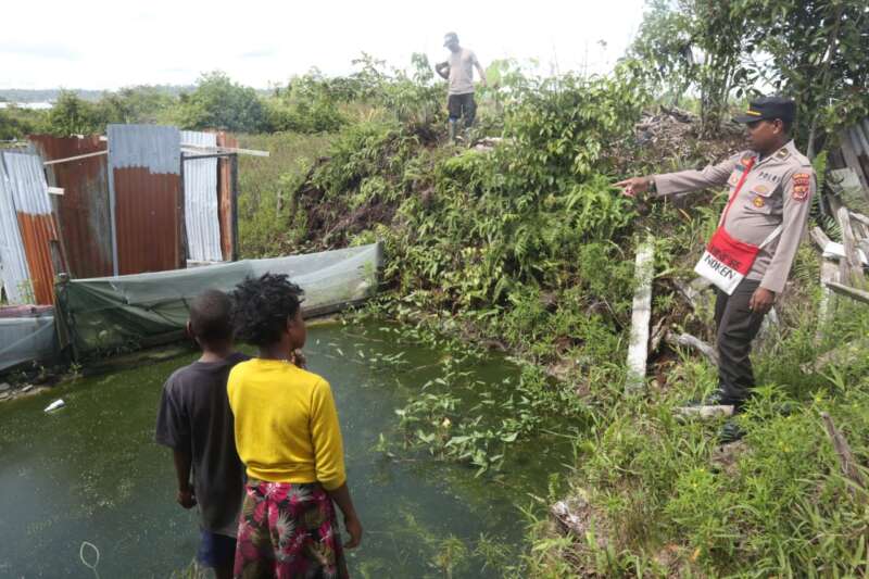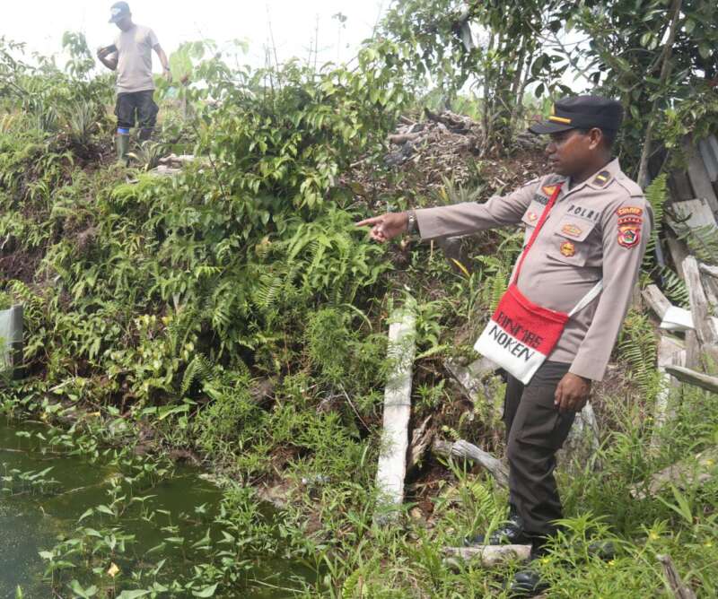 Satgas Binmas cek spot Perikanan milik Bpk Onagen Gwijangge di Kenyam-Nduga, bibit ikan dapat berkembang dg baik.