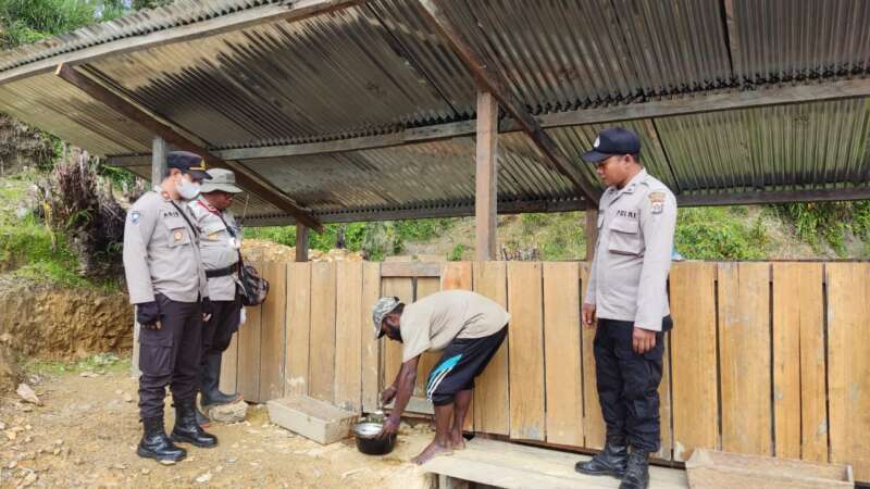 Satgas Binmas Noken di Pegunungan Bitang Cek Spot Peternakan Babi Binaannya