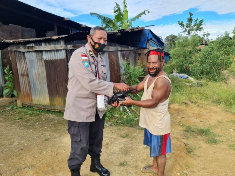 Sambangi Binaan, Satgas Binmas Noken Ops Damai Cartenz Berikan Pakan Ternak