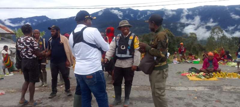 Peduli dengan Kamtibmas, Satgasres Binmas Operasi Damai Cartenz-2022 sampaikan pesan-pesan Kamtibmas di pasar pagi Yokatapa Sugapa.