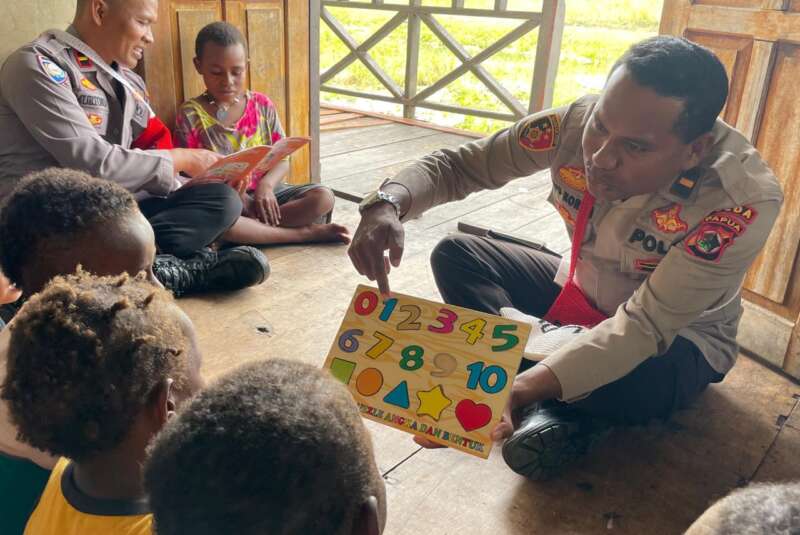 Sambangi Kampung Kemali, Binmas Noken Belajar Sambil Bermain Bersama Anak-anak Usia Dini