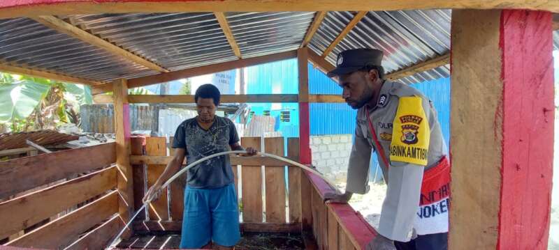 Kunjungi Spot Peternakan, Binmas Noken Bantu Bersihkan Kandang Ternak
