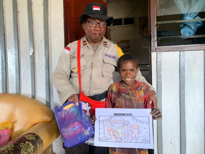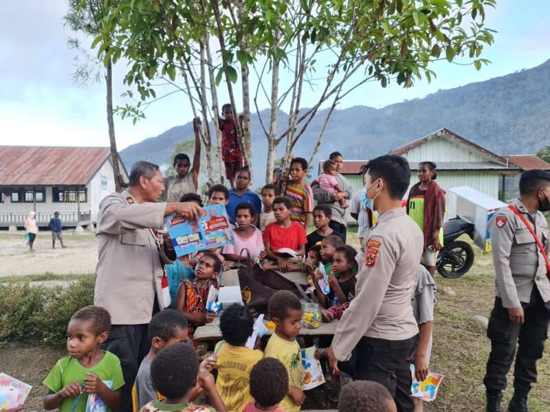 Asah Keterampilan Sejak Dini, Binmas Noken Ajari Anak-anak Kampung Wandoga Belajar Mewarnai