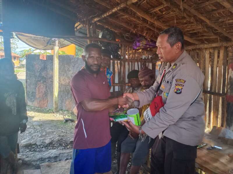 Hari Kenaikan Isa Almasih, Satgas Binmas Noken sambangi Bapak Melky Uopdana tokoh masyarakat Kampung Balusu wilayah Peg. Bintang.