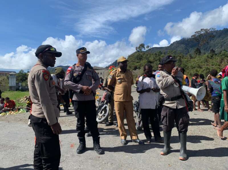 Peduli Kamtibmas, Binmas Noken Turun Berikan Imbauan Dan Motivasi Di Pasar Pagi Yokatapa, Intan Jaya