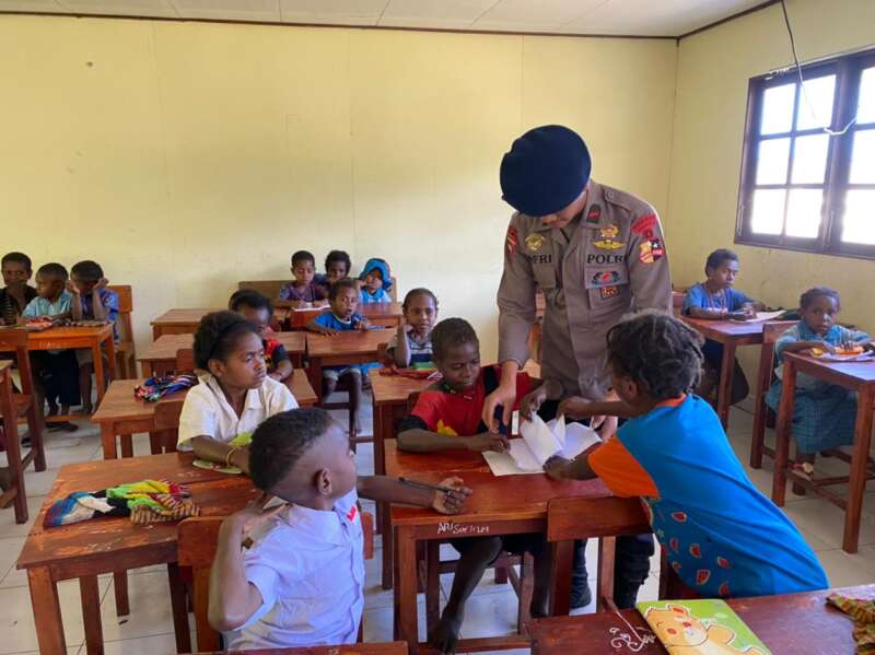 Satgas Preventif Ops Damai Cartenz 2022 Memotivasi Anak-anak Melalui Kegiatan Polisi Pi Ajar di Sekolah