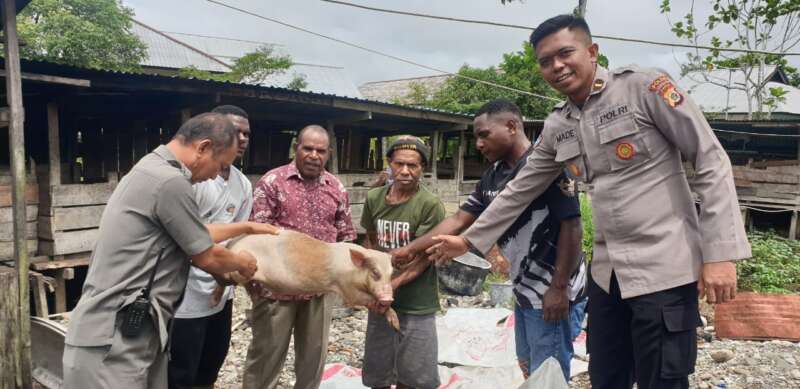 Satgas Damai Cartenz cegah konflik, serahkan bibit babi kepada suku hubla di Yahukimo.