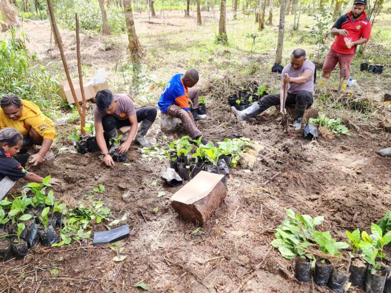 Binmas Noken Ops Damai Cartenz Kembali Bantu Warganya Dalam Menyemai Bibit Kopi Warga Binaannya