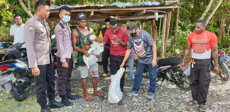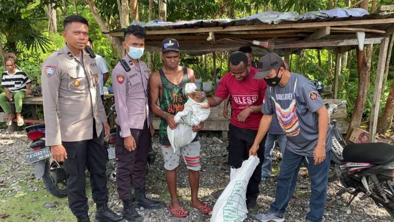 Satgas Binmas Ops Damai Cartenz-2022 Kembali Berikan Bibit ternak Babi Kepada Tokoh pemuda Yahukimo