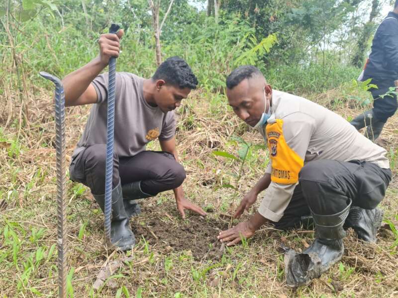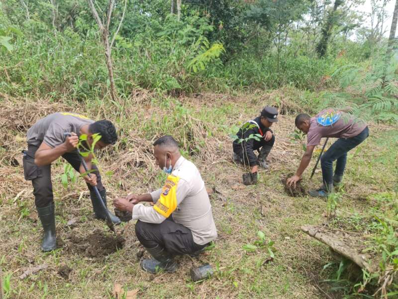 Program Kasuari, Binmas Noken di Pegunungan Bintang Bantu tanam Bibit Kopi 325 Pohon di Lahan Petani Binaannya