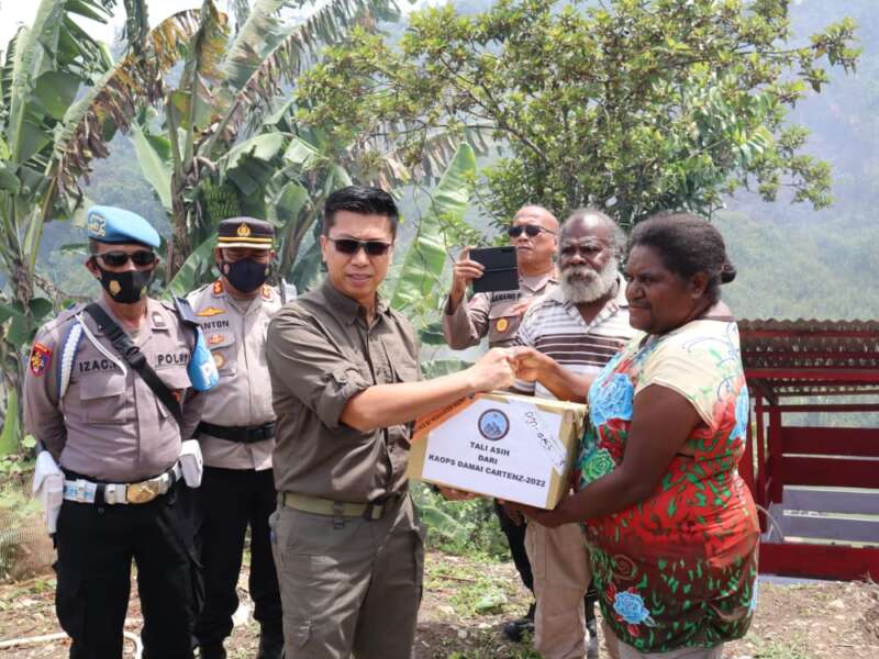Operasi damai cartenz mengelar kegiatan kasuari, menyerahkan bantuan dari Kapolri kepada warga…