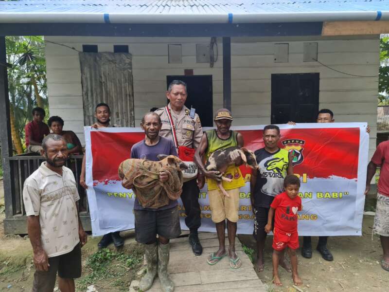 Program Kasuari, Satgas Binmas Pegunungan Bintang menyerahkan bibit babi dari Ka Ops Damai Cartenz kepada 10 sasaran masyarakat