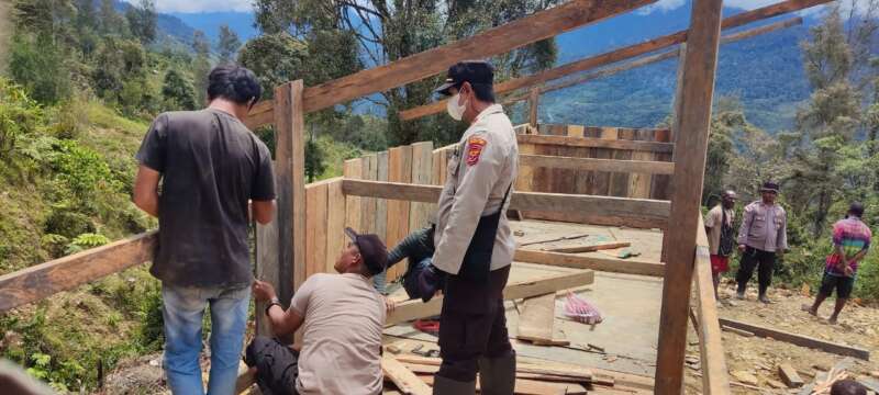 Bentuk Keseriusan Kepada Masyarakat, Binmas Noken Polri Lanjutkan Pembangunan Kandang
