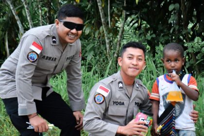 Personel Satgas Humas Ops Damai Cartenz Bangun Keakraban dengan Anak-anak di Mimika