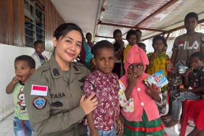 Satgas Humas Ops Damai Cartenz Posko Timika Gelar Kegiatan Humanis Bersama Anak-anak di SD Torsina Mimika
