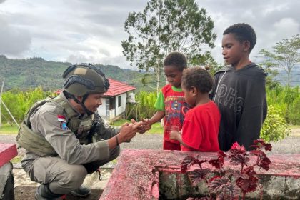 Kedekatan Bripda Wahyu dengan Anak Pegunungan Bintang, Wujud Humanisme Satgas Ops Damai Cartenz-2025