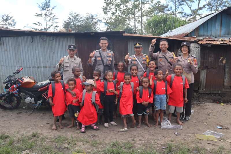 Bahagianya Anak-anak di Wamena, Dapat Tas dan Buku Dari Pak Polisi