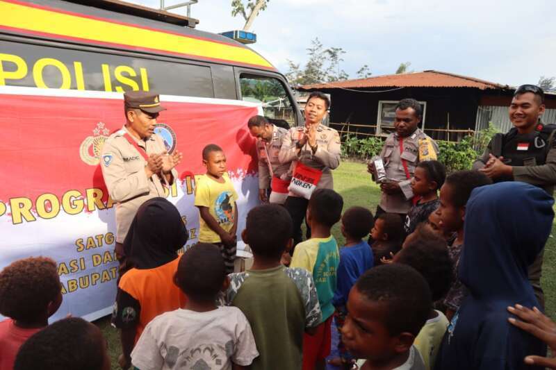 Tim Medis Polri Optimis Meningkatkan Pola Hidup Sehat Kepada Anak-Anak di Kab. Dogiyai