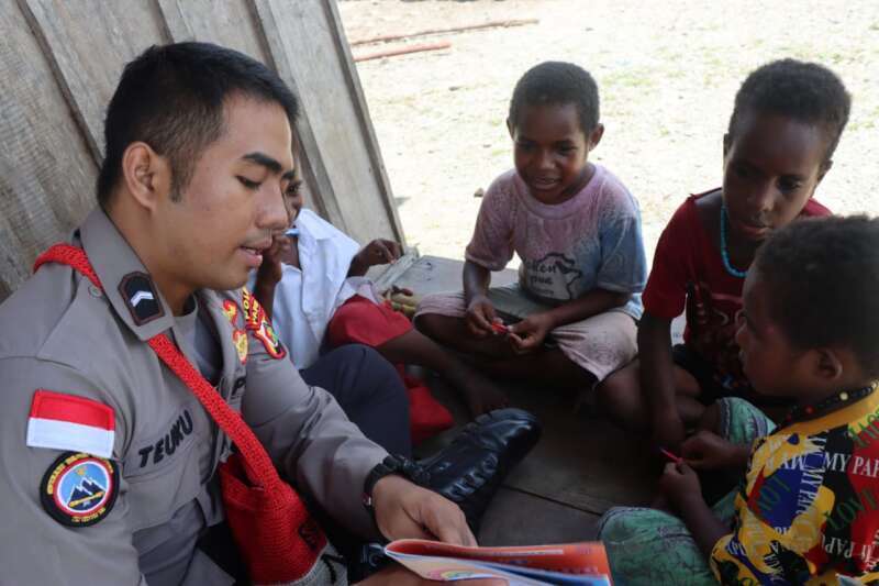 Jelang Hari Sumpah Pemuda, Binmas Noken Intan Jaya Ajak Anak-anak Hafal Teks Sumpah Pemuda