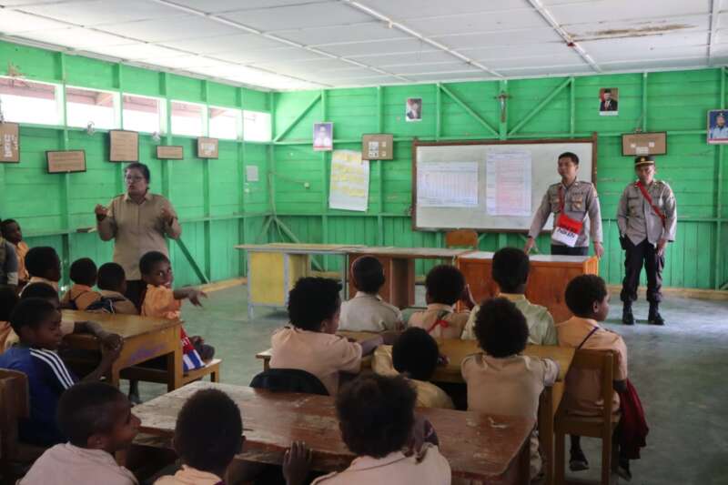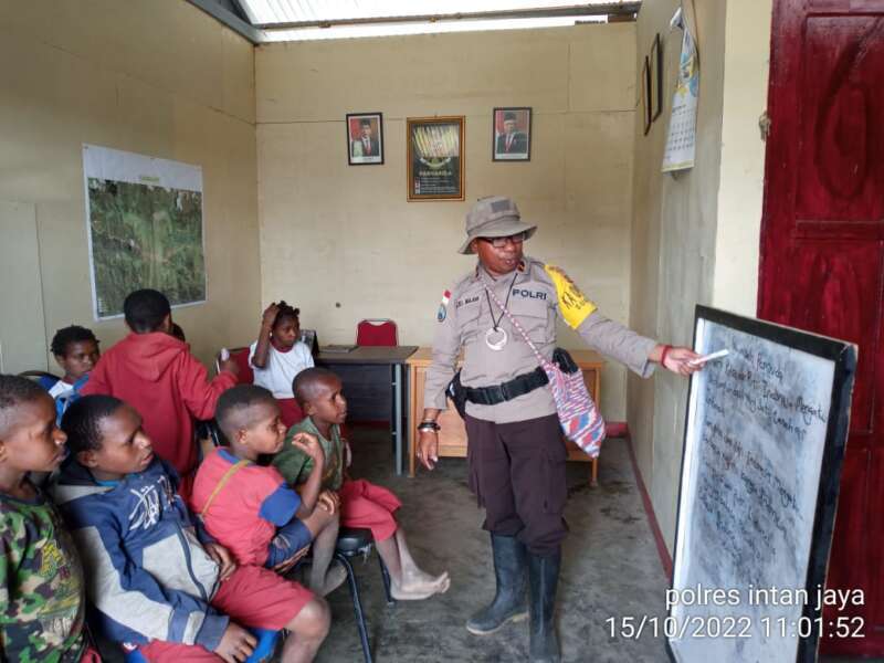 Wamena - Binmas Noken Ops Damai Cartenz 2022 mengajarkan kepada anak-anak Sekolah…