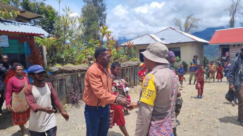 Sugapa - Usai melaksanakan Ibadah di gereja agapa, Personel Binmas Noken Ops…
