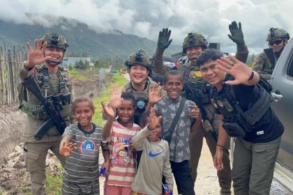 Personel Satgas Ops Damai Cartenz Sambangi Anak-anak di Pos Satgas Tindak Kulirik