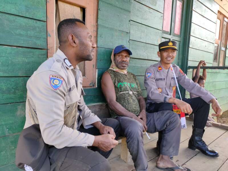 Pegubin - Satgas Binmas Pegunungan Bintang menyambangi salah satu tokoh Masyarakat Kampung…