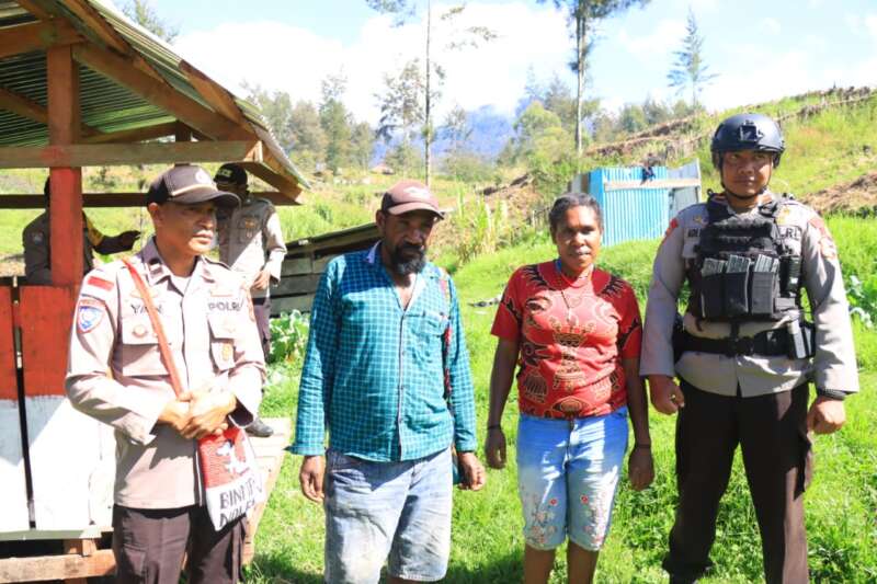 Sugapa - Personel Satgas Binmas Ops Damai Cartenz yang dipimpin Ipda Engel…