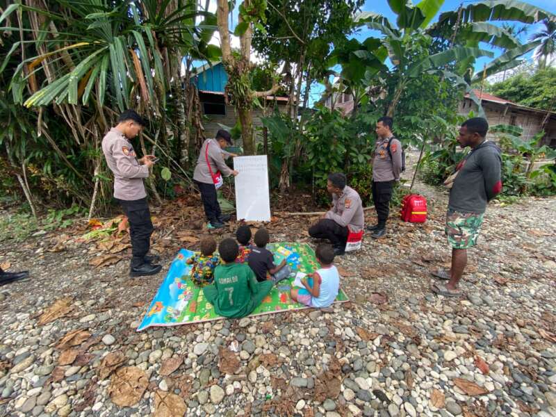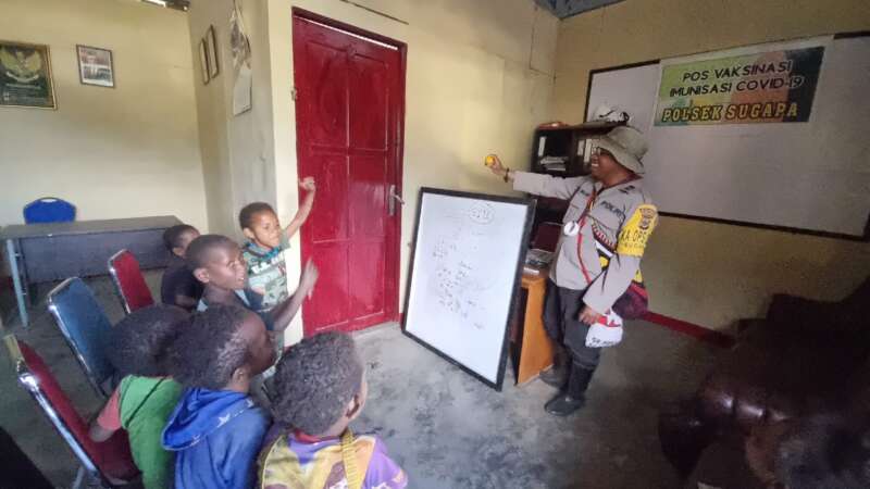 Tak Kenal Lelah, Binmas Noken Yahukimo Terus Ajarkan Anak-anak Hubla Membaca dan Berhitung.