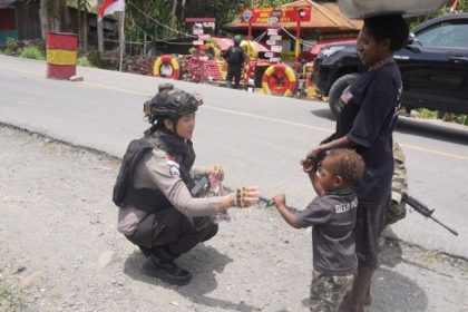 Polwan Satgas Ops Damai Cartenz Tunjukkan Sentuhan Humanis di Puncak Jaya