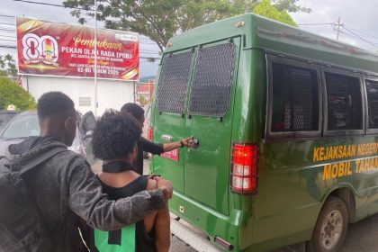 Satgas Ops Damai Cartenz Kawal Serah Terima Tersangka Anis Telenggen ke Kejaksaan Negeri Nabire