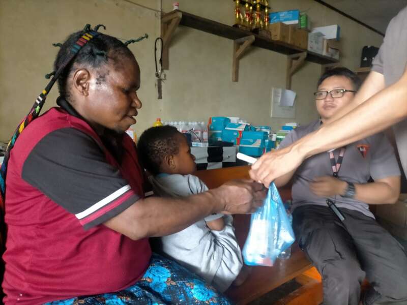 Tim Medis Ops Damai Cartenz berikan pelayanan kesehatan kepada ibu Elisina dan Anaknya